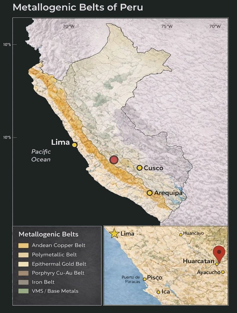 Huarcatan properties (L&L) lie within a prolific Andean metallogenic belt